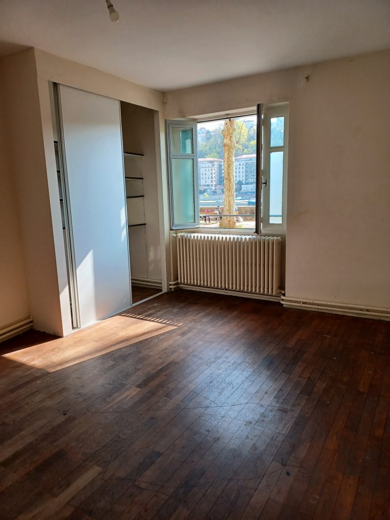 Idéalement situé Quay Jayr au bord de Saône et à proximité de gare de Vaise, dans un immeuble de 1951, beauT5 de 90m² situé en rdc surélevé. Beaucoup de potentiel pour cet appartement qui nécessite cependant d’importants travaux (isolation, huisseries, embellissements etc : les travaux sont estimés à 90.000 euros)